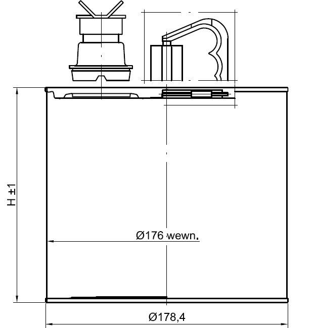 Kanister wykonany jest z blachy ocynowanej. Denko i wieczko są podwójnie zawalcowane do pobocznicy i uszczelnione uszczelką z masy uszczelniającej. Kanister wyposażony jest w uchwyt tworzywowy zgrzany do wieczka oraz korek wylewowy w kształcie lejka z plombą, Na życzenie zamawiającego wszystkie typy kanistrów mogą mieć wytłoczony na pobocznicy trójkąt - znak ostrzegawczy przed substancjami niebezpiecznymi.