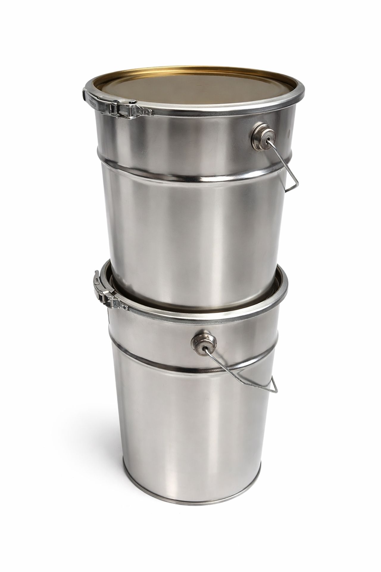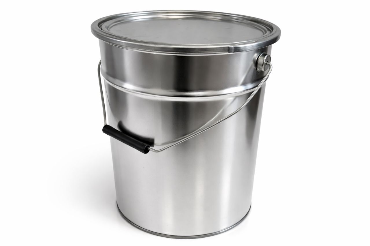 Wiadro wykonane jest z blachy ocynowanej. Zamknięte wiekiem nakładanym, połączonym z pobocznicą pierścieniem z zaciskiem dźwigniowym zabezpieczonym przed otwarciem plombą. Uszczelnienie wieka wykonane jest z masy uszczelniającej. Zawalcowanie dna z pobocznicą uszczelnione jest uszczelką z masy uszczelniającej. Dla wiader o pojemności od 2,5 l do 7,0 l kabłąk wykonany jest z drutu ocynkowanego Ø 2,7 mm; dla wiader o pojemności od 10,0 l do 20,0 l kabłąk wykonany jest z drutu ocynkowanego Ø 3,9 mm z uchwytem z tworzywa sztucznego. Na życzenie zamawiającego wiadra o pojemności 2,5L - 5L oraz 10L -12L mogą być wykonane w wersji z przetłoczeniem pobocznicy lub bez przetłoczenia pobocznicy. Wiadro może posiadać zabezpieczenie powierzchni pod wyroby wodorozcieńczalne. Wszystkie typy wiader mogą mieć wytłoczony na pobocznicy trójkąt - znak ostrzegawczy przed substancjami niebezpiecznymi.