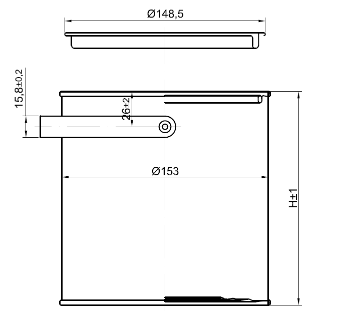 Wymiary wiader cylindrycznych Ø153 mm
